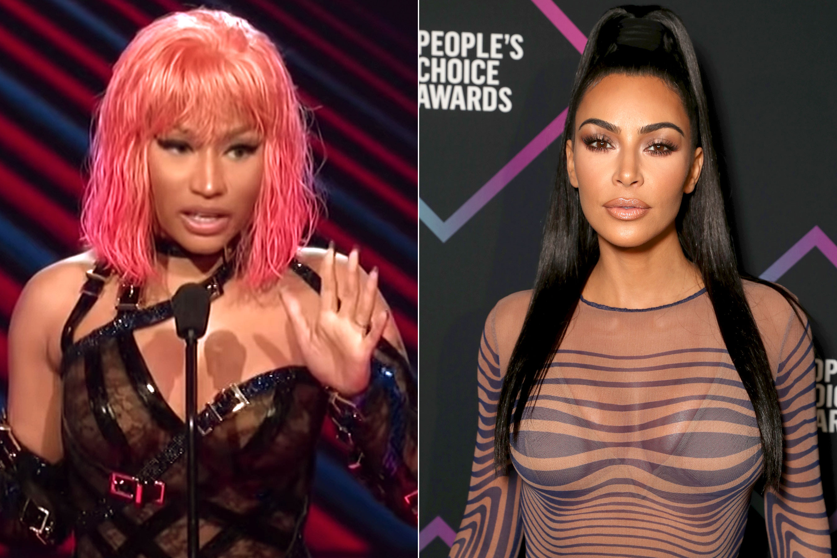 Nicki Minaj was so impressed with Kim Kardashian West‘s look at the 2018 People’s Choice Awards that she decided to dedicate her win to the reality star.