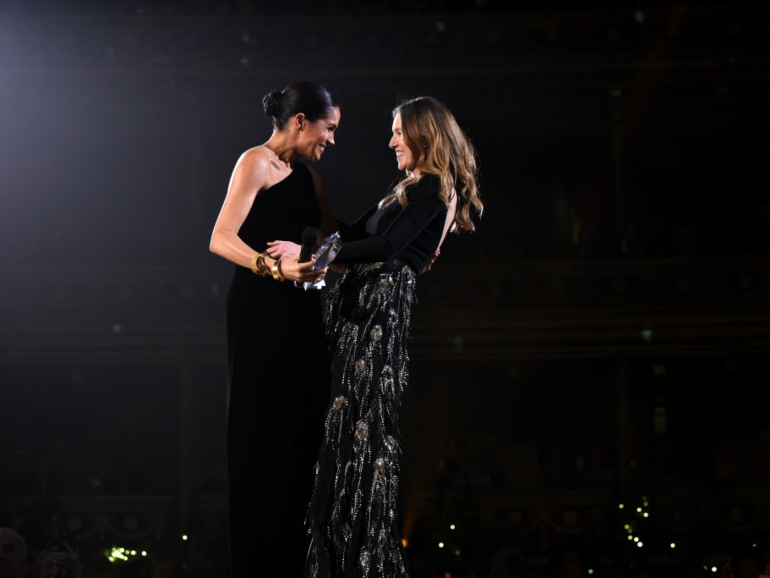 Ms. Keller is the artistic director at Givenchy, a 66-year old Parisian luxury fashion brand. She designed Ms. Markle’s beautiful wedding gown. With the glow of pregnancy evident on her face, the 37-year-old Duchess looked breathtaking in the one-shoulder black velvet gown that she accessorised with gold bangles and gold Tamara Mellon heels.