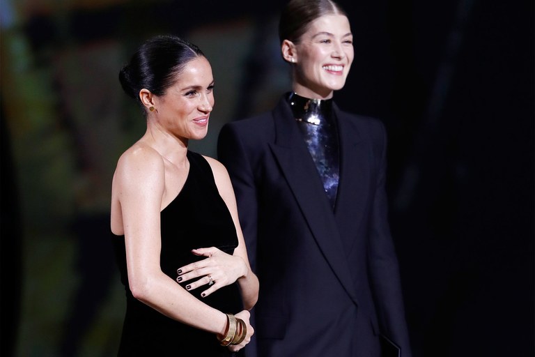 The Duchess of Sussex, the sweet and gorgeous Meghan Markle is known for her unconventional choices. An inspiration to women across the globe, she represents and supports several causes. She recently made headlines for brushing aside Royal protocol and donning dark nail lacquer to the British Fashion Awards held at the Royal Albert Hall in London. The Duchess made a surprise appearance at the event to honor her good friend Clare Waight Keller with the British Womenswear Designer of the Year award. Actress Rosamund Pike of Gone Girl fame was present alongside to hand out the prestigious award.