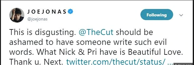 Immediately, Joe Jonas and Sophie Turner came to rescue by tweeting that these statements are ridiculous and disgusting, it must be put to shame.